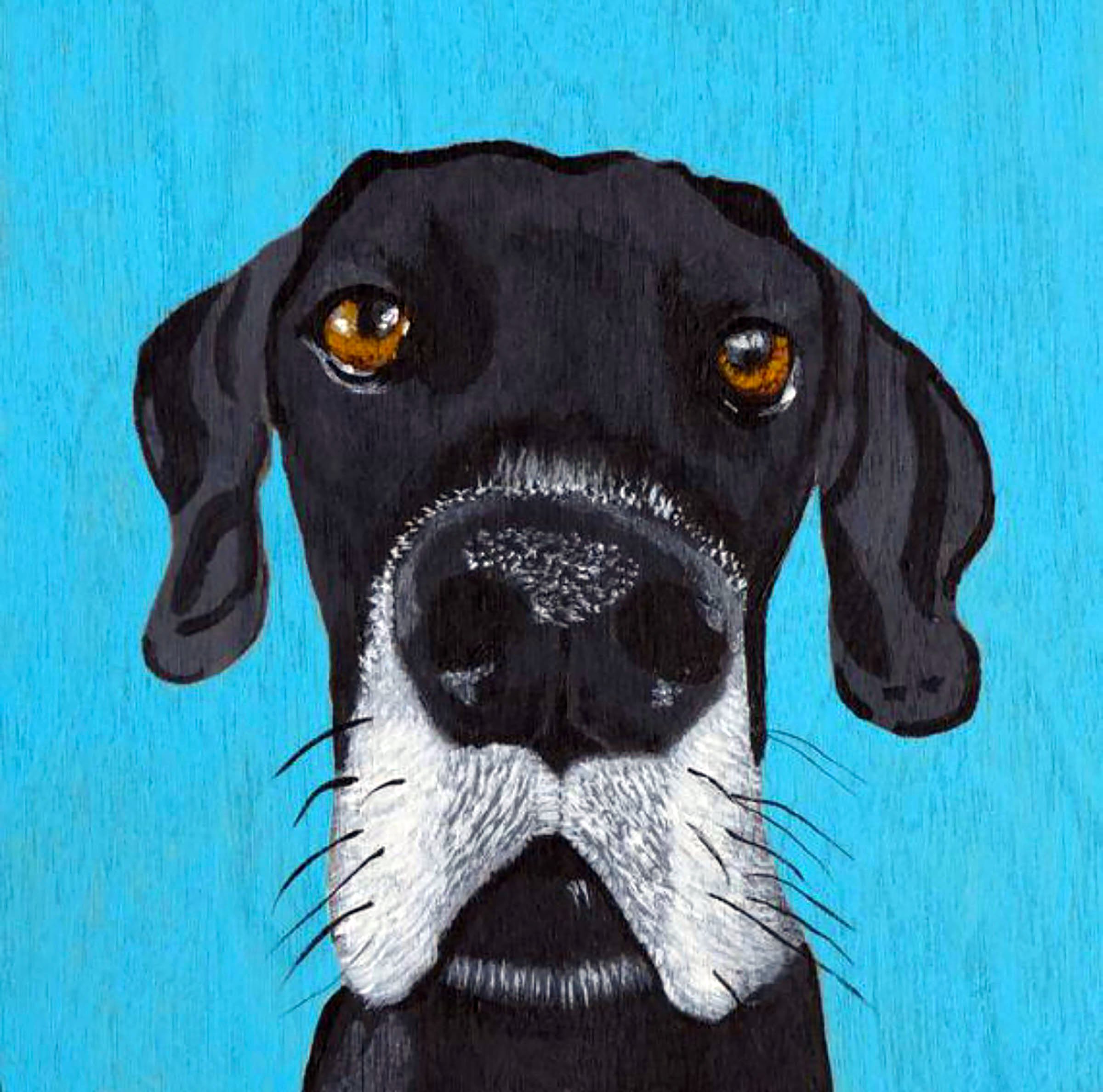 I paint on wood panels either 6 x 8 or 6 x 6 and you can pick the background color if you like. Depending how busy I am they usually take about 2 weeks. The price is $100 plus shipping and that is per dog. If you want multiple dogs in the painting it is $100 per dog.